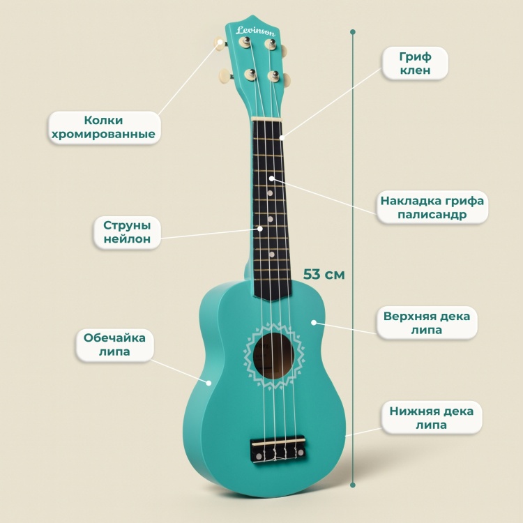 Укулеле сопрано Levinson US-10 TIF PACK — это готовый комплект для комфортного старта обучения игре. Благодаря компактному размеру и легкому весу инструмент удобно использовать дома, брать с собой в поездки или на прогулки.